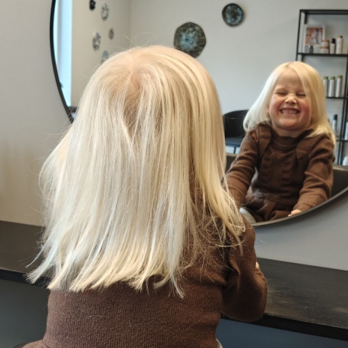 Uanset om det er en hurtig studsning, den første klipning eller et helt nyt look, er barnet i centrum. Jeg tager mig god tid og tilpasser mig barnets behov og humør – og der er selvfølgelig også plads til lidt sjov undervejs.