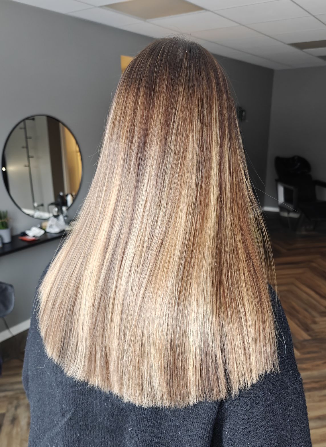 Folie-striber lavet med blød bund. Lavet i et mørkt, farvet hår.